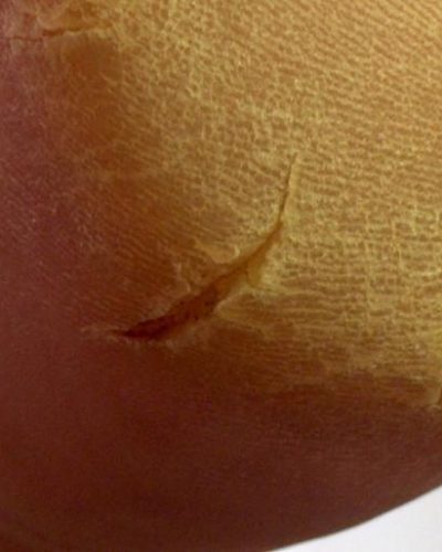 – Fissuration : même principe que les raghades et les crevasses sauf que l’on a une rupture net de la peau sans présence d’hyperkératose